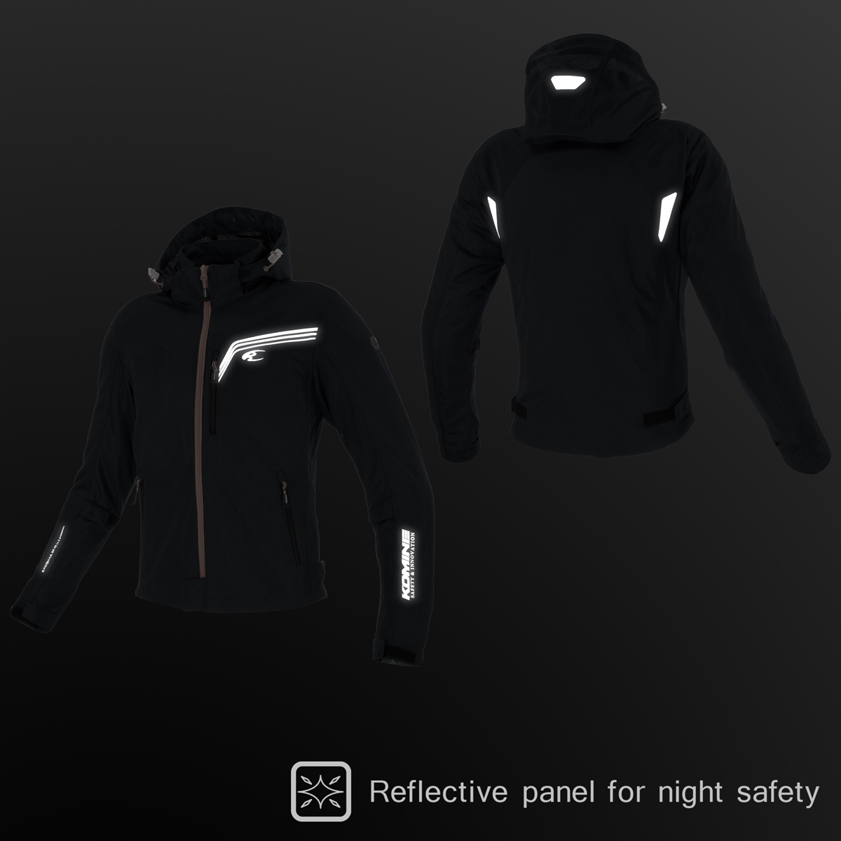 ・夜間視認性を高めるリフレクター : 胸・腕・背中・フード