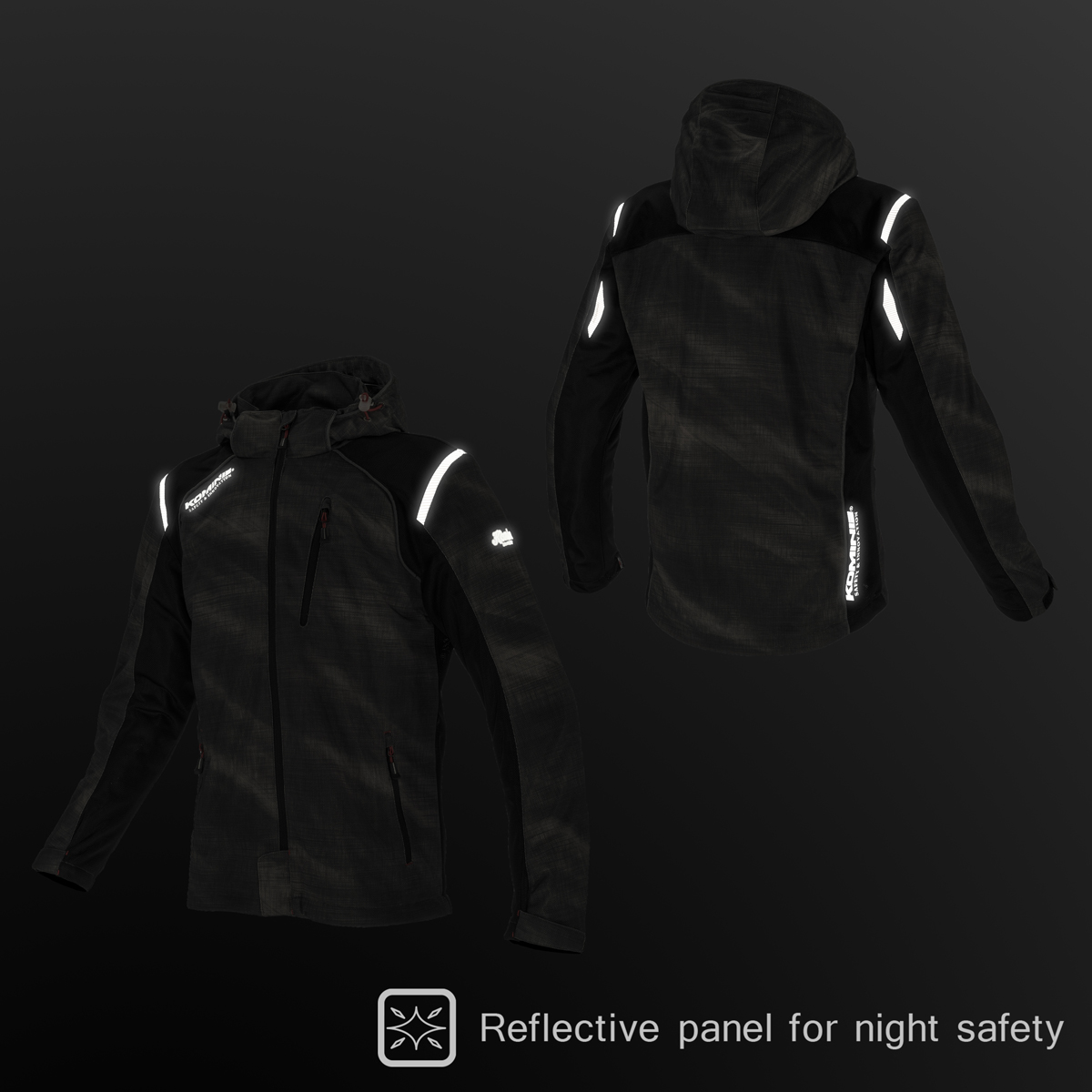 ・夜間視認性を高めるリフレクター : 腕・肩・背中