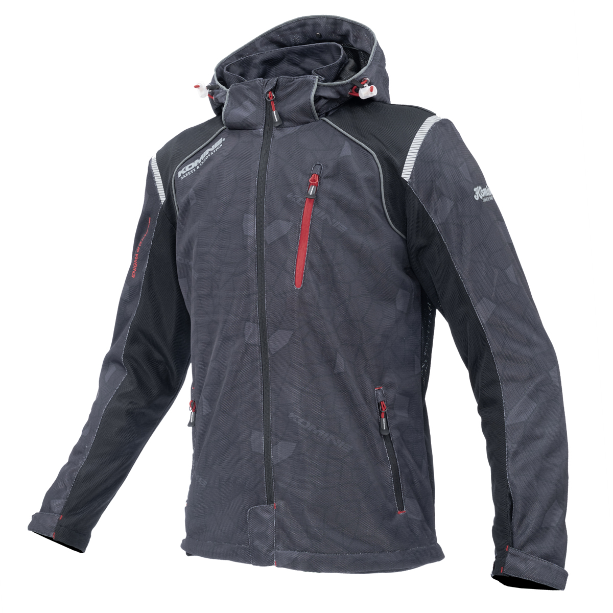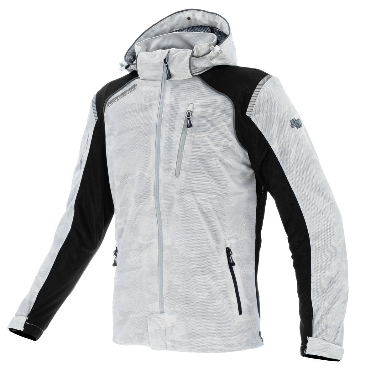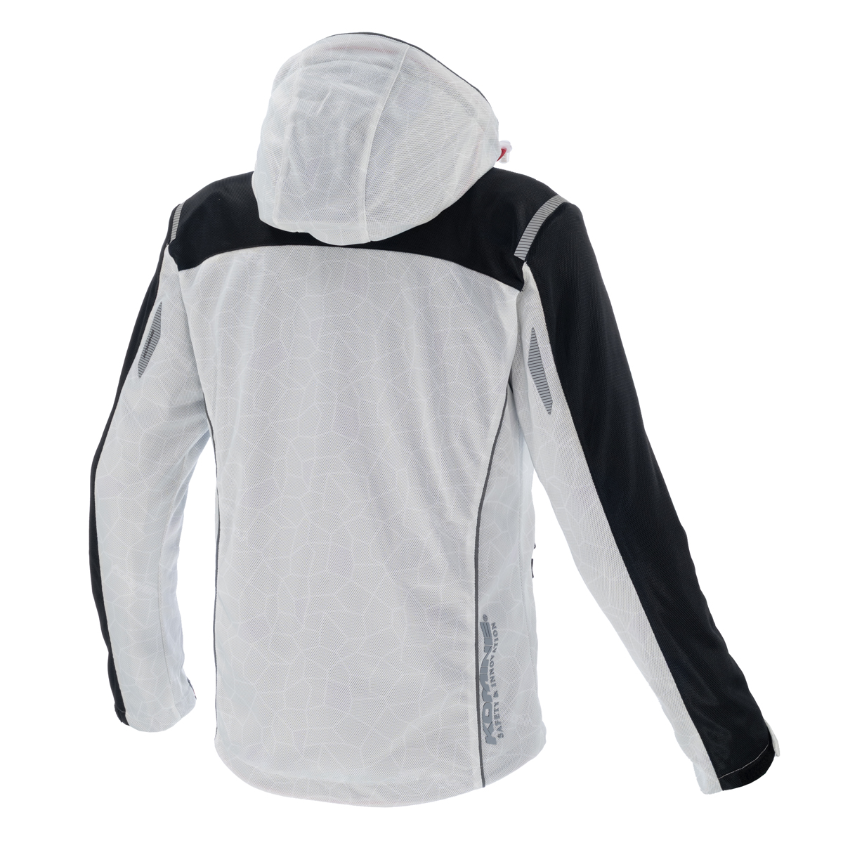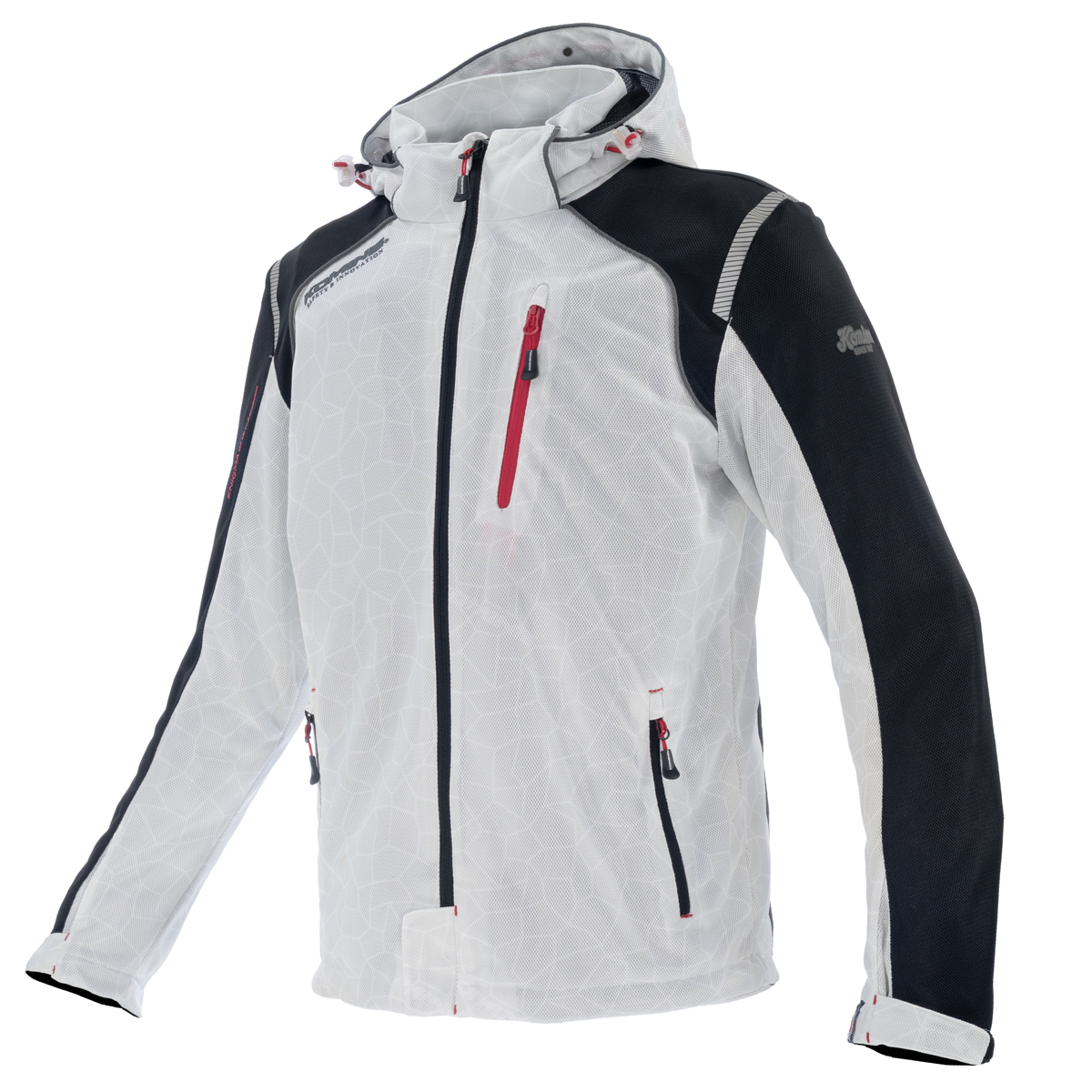 A full mesh parka made entirely with mesh fabric printed with a graphic pattern for a cool and comfortable feel.