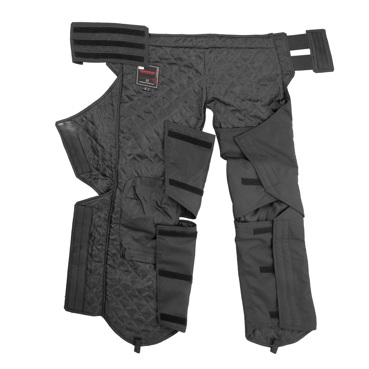 ベルクロで留める巻き付けタイプのオーバーパンツ。ベルクロの調整幅が大きく、絞り気味に調整すれば一般のオーバーパンツよりもすっきりとしたシルエットに。